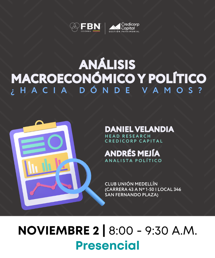 ¿Qué esperar tras los primeros 15 meses del gobierno Petro? Daniel Velandia y Andrés Mejía analizarán la coyuntura política y económica de Colombia, en medio de un desafiante entorno global y de cara a la discusión de temas claves para el desarrollo del país.